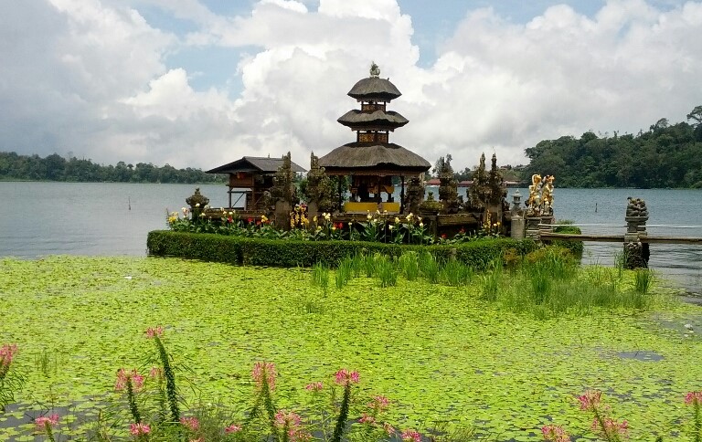 De tocht gaat verder, een tempel! een van de zovele !? nou eigenlijk niet. Het was er druk maar niet met toeristen. De tempel ligt aan lake Bratan. op dat moment was er een ceremonie bezig. Erg indrukwekkend om te zien. We zijn daar best even blijven hangen, ik raakte namelijk nogal in een zen modus. Ergens in de schaduw zitten, wandelschoenen uit, kleermakerszit en rug gerecht met ogen dicht. Ik waande me helemaal weg en meer een met mijzelf ? heb nog een hoop over na te denken. 😉