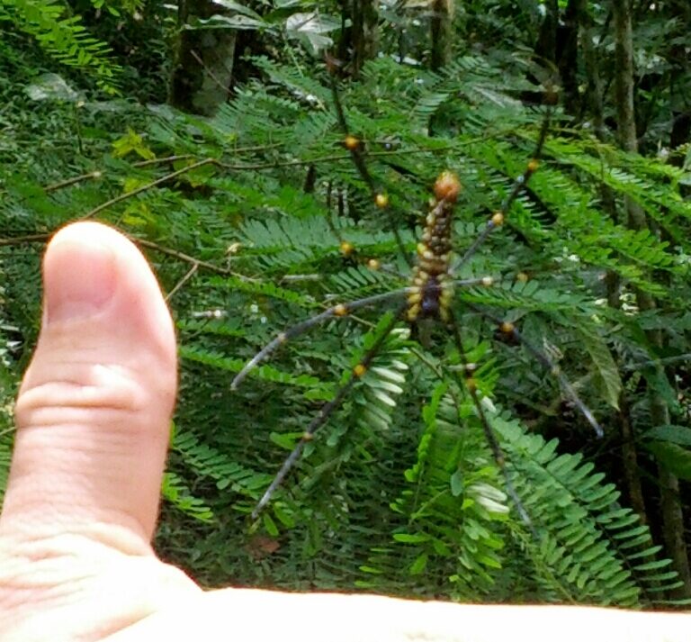 Ergens ver van de openbare weg verstopt in een bos langs een smal pad. Ik blijf dit soort situaties bizar vinden. De waterval was mooi en erg rustgevend ondanks het geweld van het water. Een mooi moment was … een spin groter dan mijn duim. Wat een natuur EN ik heb er oog voor!