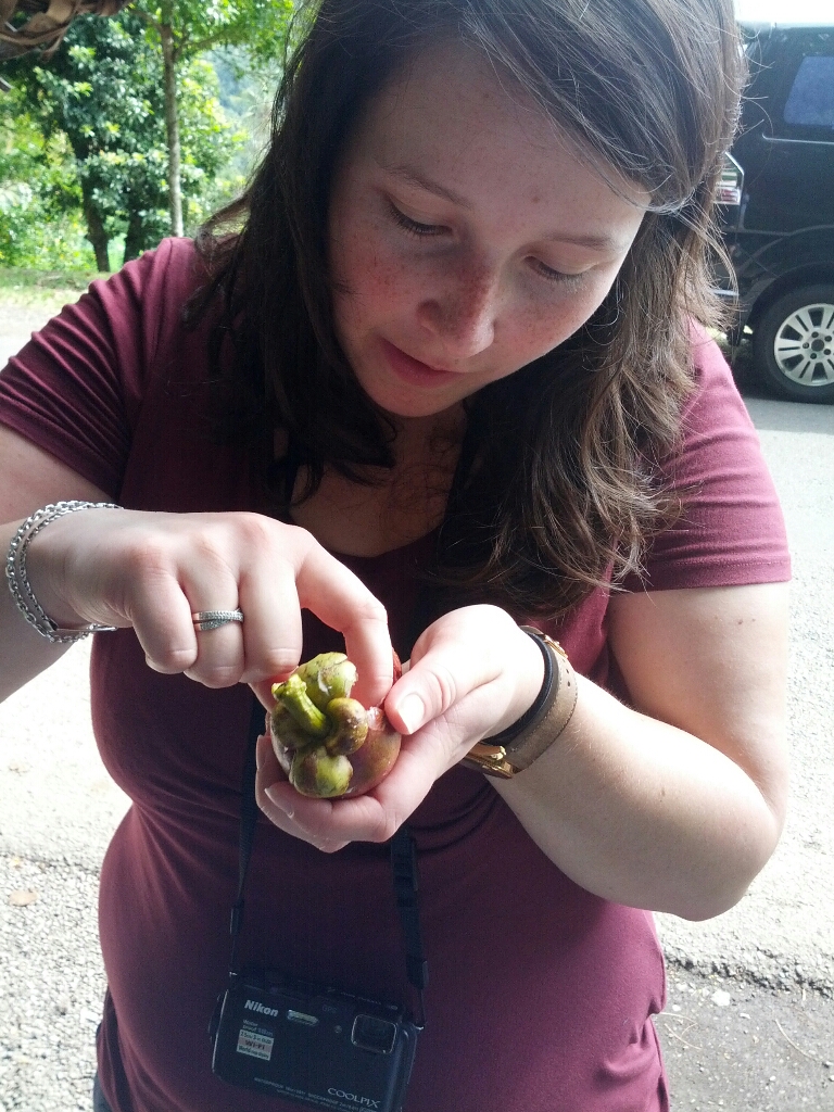 Een lange dag kwam ten einde, onderweg hebben we nog fruit gegeten en gekocht. Ook de doerian geprobeerd, maar die lag ons niet zo. wat stinkt die vrucht. Kadek, heeft er een gekocht voor thuis. Maar mocht niet in zijn busje:-)