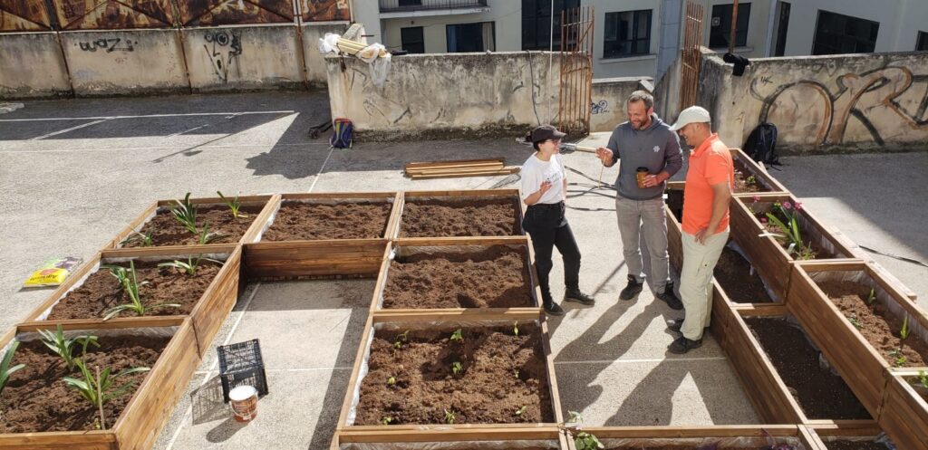 Het gebouw staat al 30 jaar leeg, en krijgt geen andere bestemming. Er is ook geen geld om het pand en de lokalen te renoveren. Momenteel is hij bezig om een rooftop garden aan te leggen. Dit op een duurzame manier. En wij gaan een dag helpen. Vooral om te zien hoe hij dit uitvoert. Wellicht kunnen we iets toepassen in camp Eleonas. Tevens kijk ik of er mogelijkheden zijn om hier met vluchtelingen aan de slag te kunnen gaan. Een soort leer, werkplek te creëren. Ik denk dat het een kans is om de mensen uit die frustrerende wachtstand te halen.
