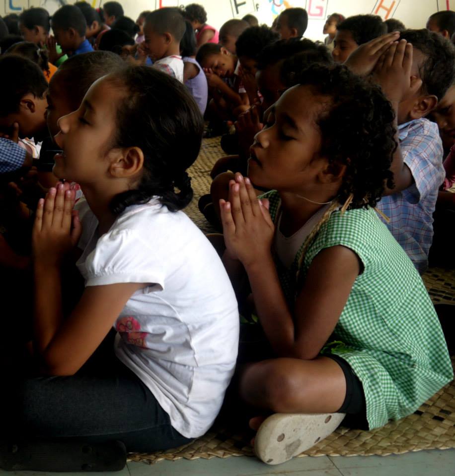 Het was na devotie time een ” bende” geen dagelijks programma. 65 kinderen die bezig gehouden moesten worden. Moeders en vaders die alles v.w.b. inrichting gingen verplaatsen. Eten werd tevoorschijn getoverd. Refreshments werden binnen getild. Ondertussen liepen andrea en ik maar een beetje verdwaasd rond. Weer zo een moment van Fiji aanpak π