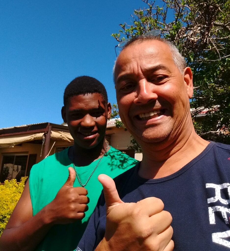 De gitaarlessen tussen de buien door gaan eigenlijk wel prima op de dinsdagen en donderdagen. Thando blijkt aanleg te hebben voor muziek en muziek instrumenten. Zo ook de gitaar. Ik heb mij voorgenomen om met Pasen zover te zijn dat hij voor de gemeenschap het nummer “Let it be” ten gehore kan brengen. (dat weet hij zelf nog niet )