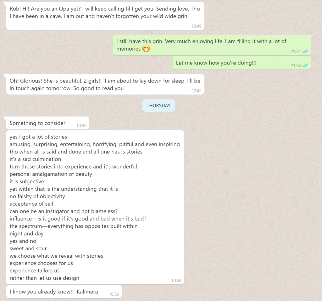 Vanaf dat moment raak ik in een roes om zaken te regelen en zo goed mogelijk af te sluiten. Ik weet ook aardig door te pakken. Met mensen afspraken gemaakt omtrent werken vanuit Nederland ten gunste van de lopende projecten. Dinsdag het besluit en zaterdag 21 Maart in het vliegtuig. Geforceerd afscheid nemen van mensen die juist net in mijn leven zijn gekomen. Het vergt behoorlijk wat energie. 4 dagen na mijn vertrek is de boel in SA op slot gegaan.